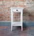 Detta sängbord levereras i klassisk stilren design med en låda och underhylla, en mycket stabil konstruktion. Lådan har en knopp i metall och sängbordet är utfört i vitlack, vilket ger möjligheten att kombinera detta sängbord med såväl trägavlar som gavlar i tyg. Ett givet tillval för att göra sängen komplett.